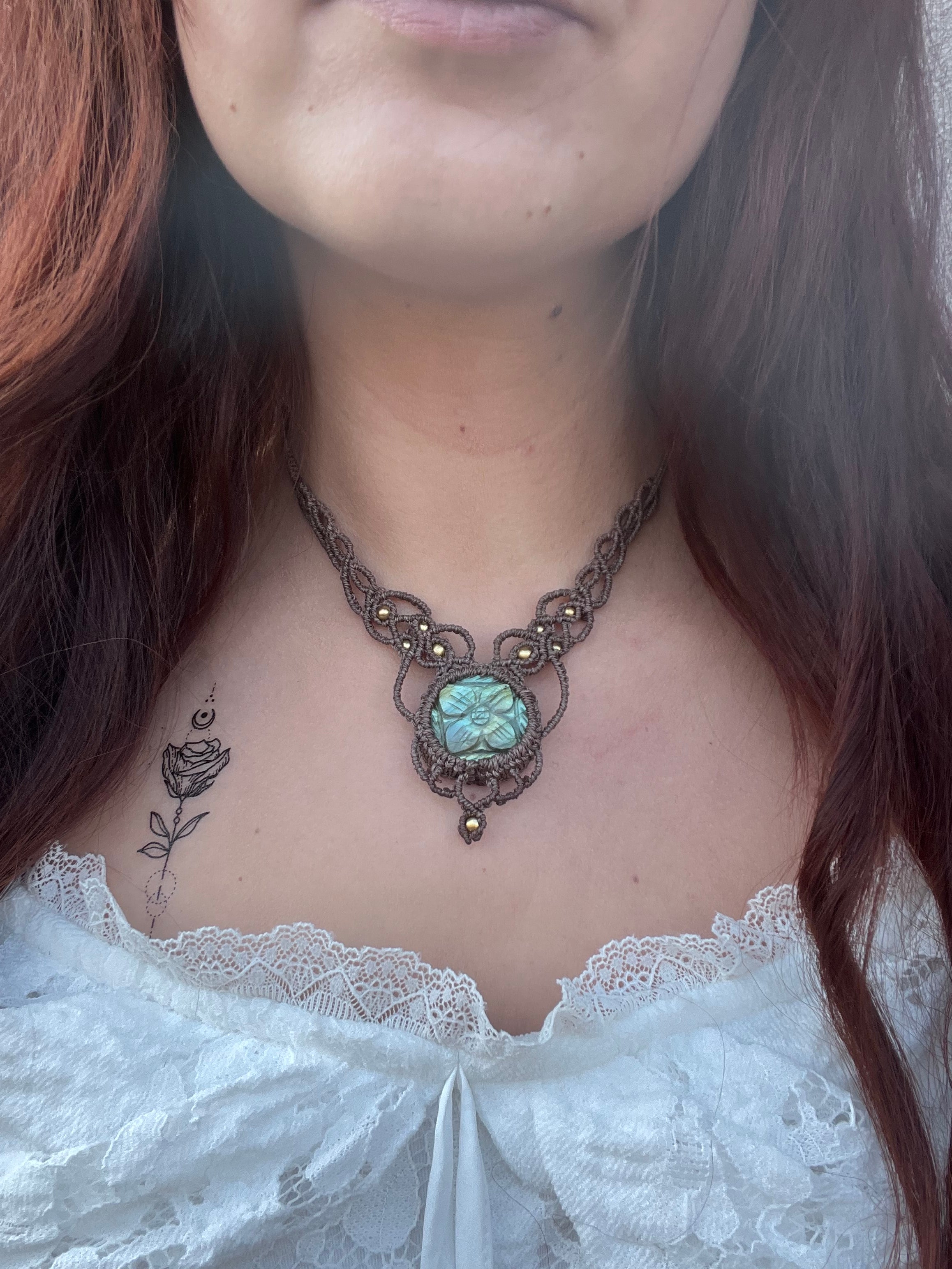 850,00 Kč850,00 Kč/Tento ručně drhaný náhrdelník nese uprostřed minerál labradorit s jemnou kytičkou. Náhrdelník doplňují mosazné korálky. S tímto náhrdelníkem budete mít styl. 🧚🏼♂️🧚🏼♂️🧚🏼♂️ Esoterické vlastnosti labradoritu: -...
