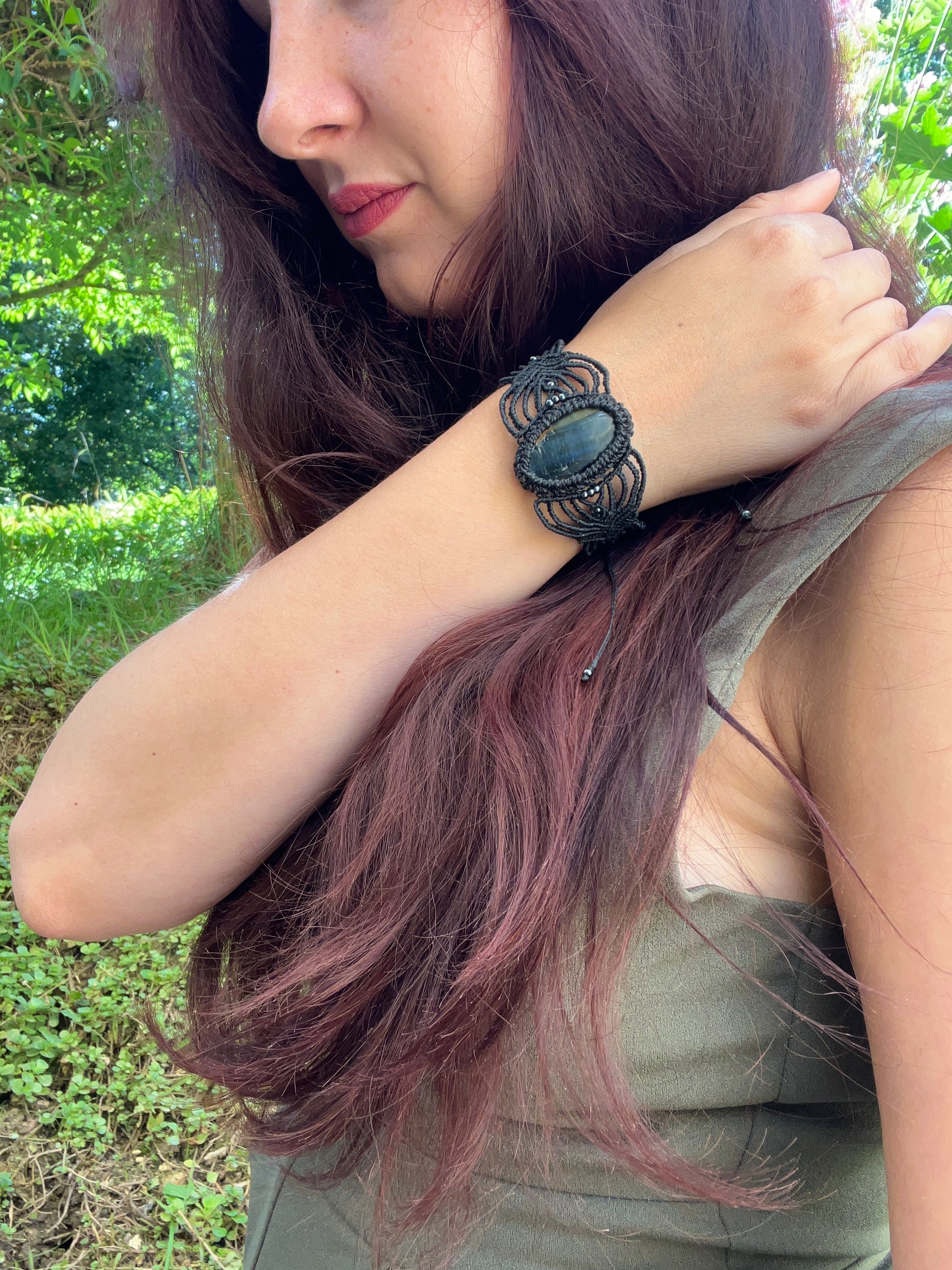 Nitě se proplétají jako prastaré runy, uzly ukrývají tajemství přírody a každý vzor nese svůj vlastní příběh. Náramek není jen ozdoba – je to talisman, který chrání, inspiruje a připomíná, že i v tom nejtenčím vlákně může být ukryta síla celého světa.“