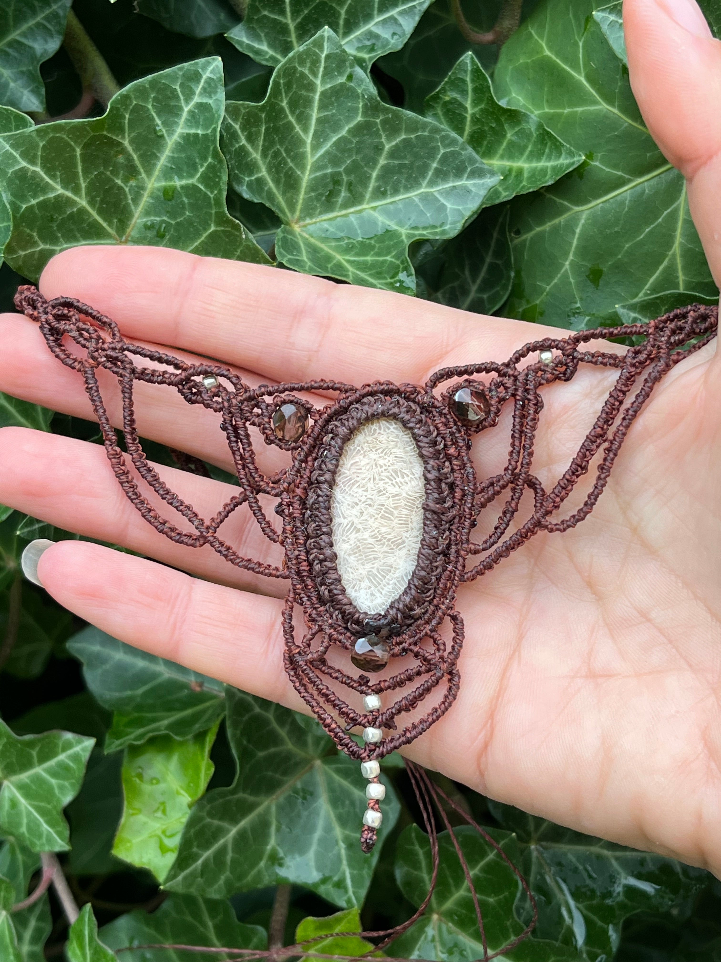 850,00 Kč850,00 Kč/Elegantní/fantasy/boho Macrame náhrdelník s centrálním minerálem - saturnový chalcedon. Můžete nosit tak, že náhrdelník úplně obepne krk, nebo ho můžete nosit i mírně povolený. Nikdo vás...
