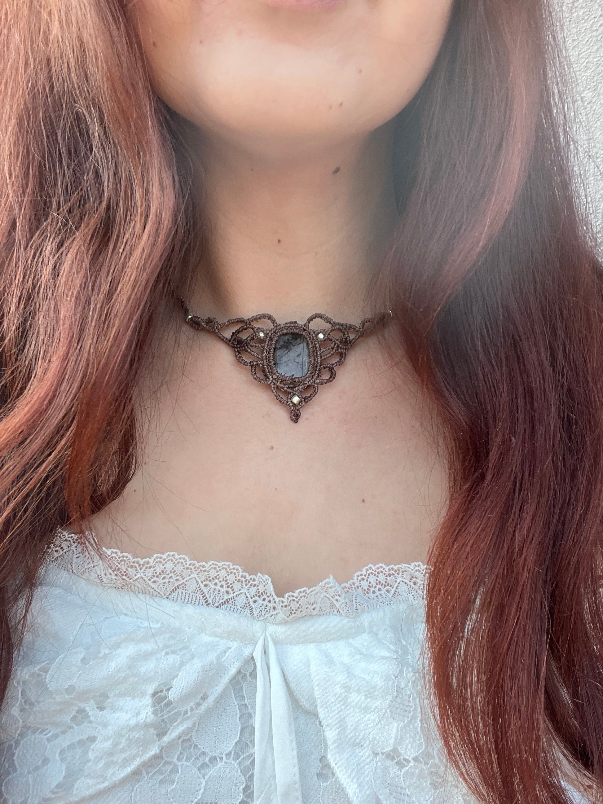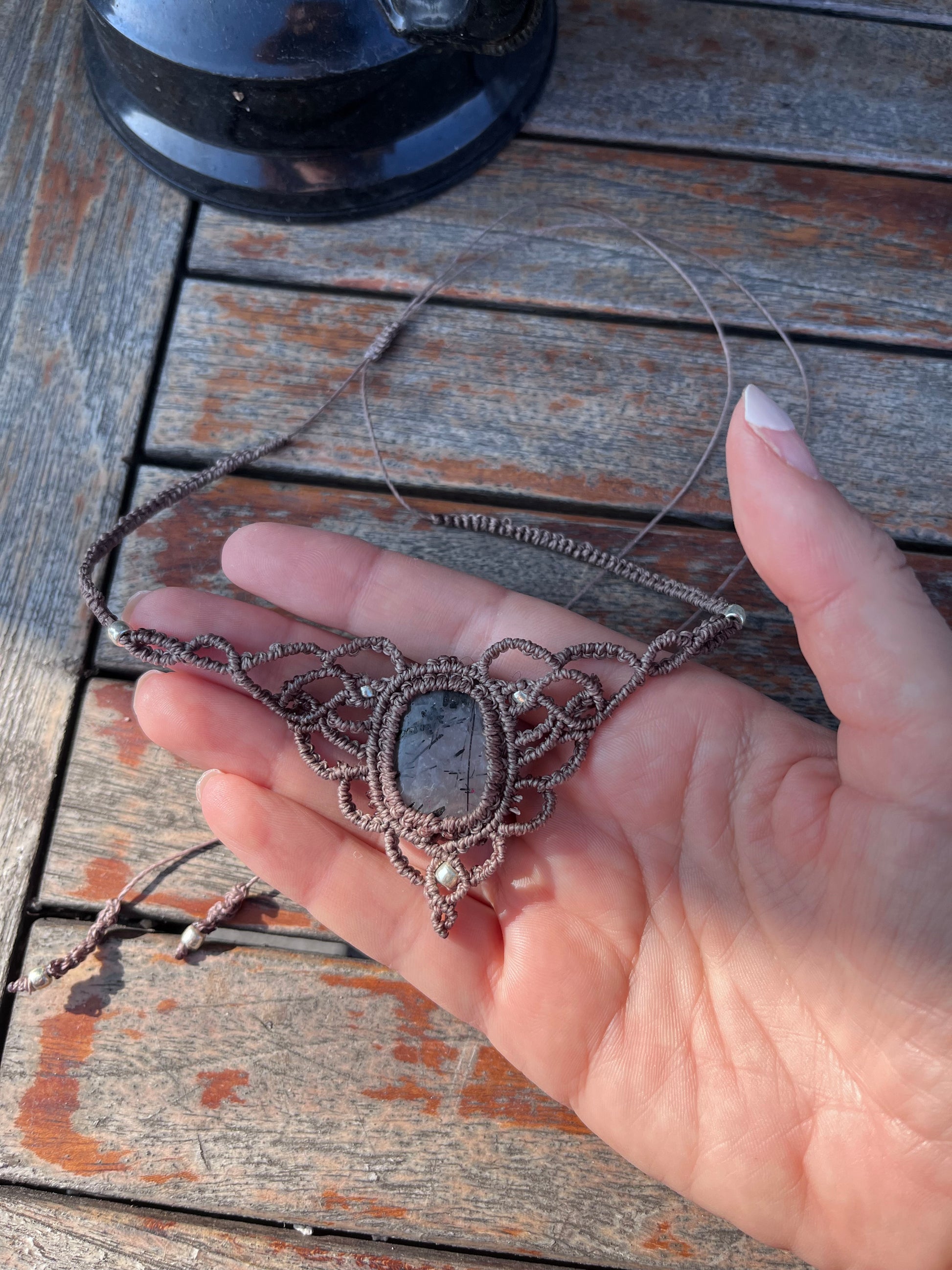 Tento vílí náhrdelník nese uprostřed křišťál s černým rutilem.