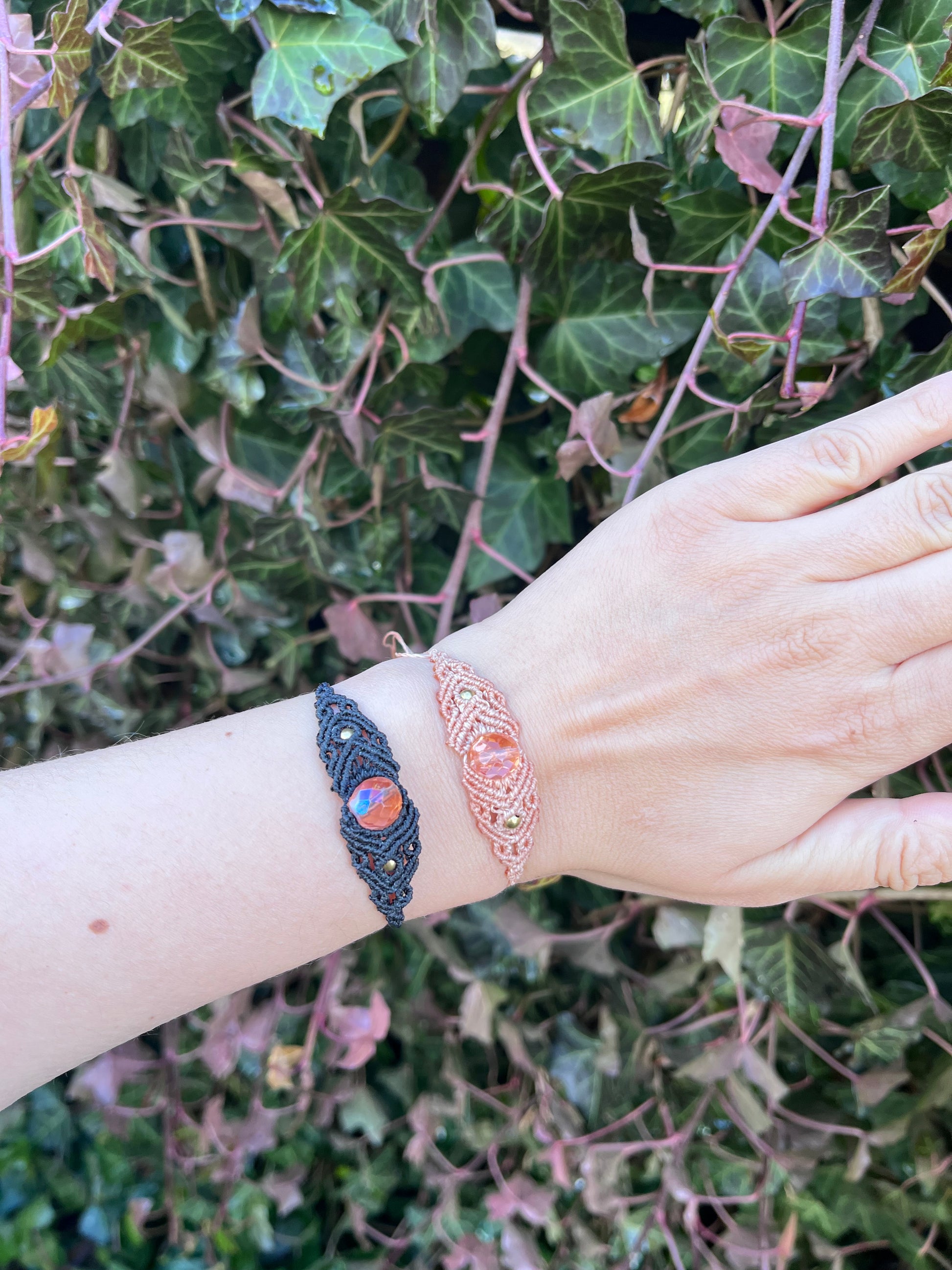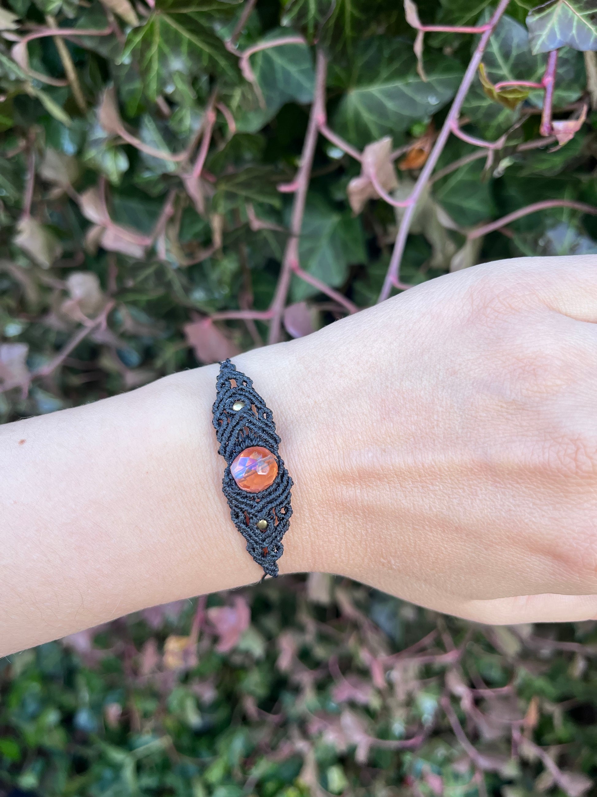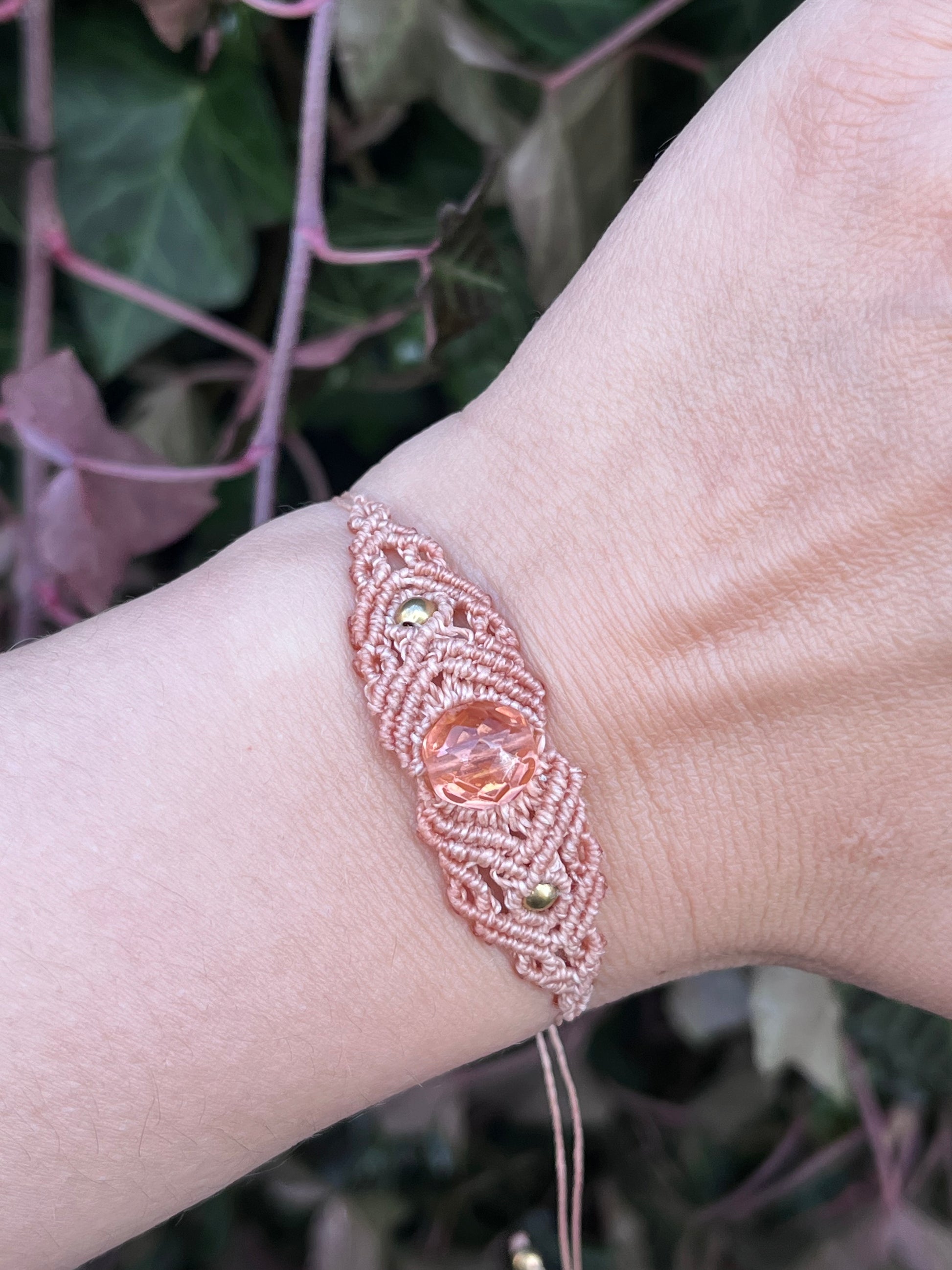 Tento drhaný náramek je vyroben z tenké nitě, je proto malý a decentní. Uprostřed nese skleněný korálek. Vzadu posuvný. Náramek je velmi odolný díky povoskované nitce. 🧚🏼♂️🕯️