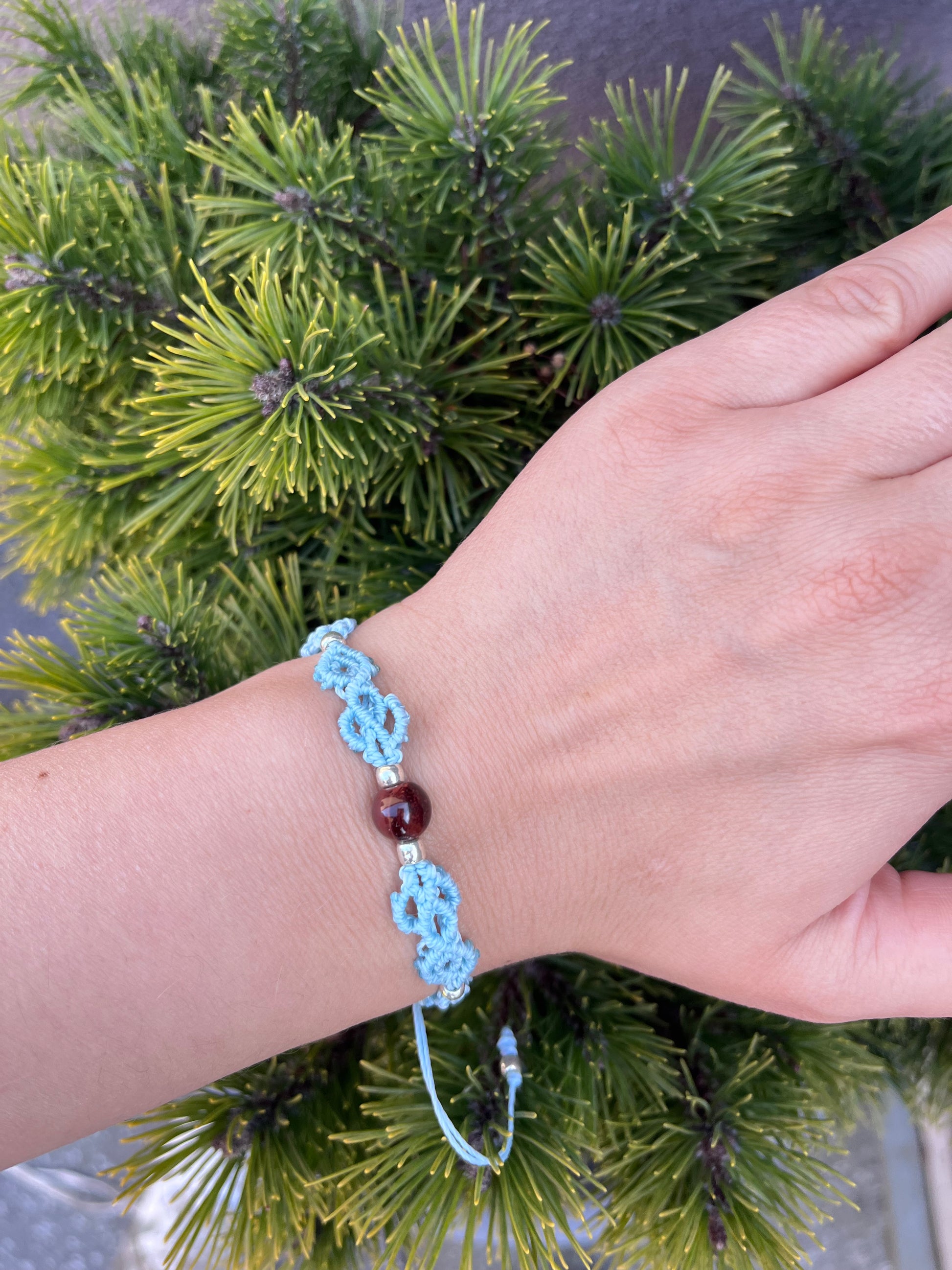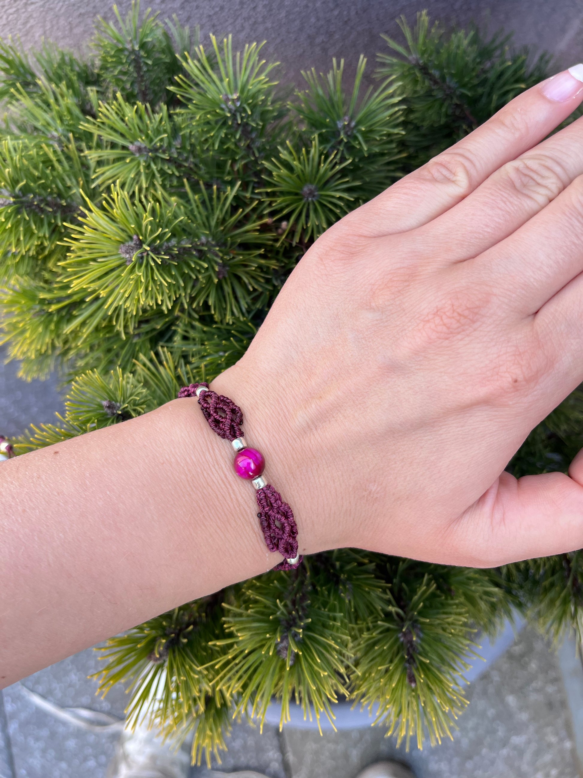 Tento Macrame náramek je velmi jemný a hodí se kamkoliv. Uprostřed nese minerální korálek.